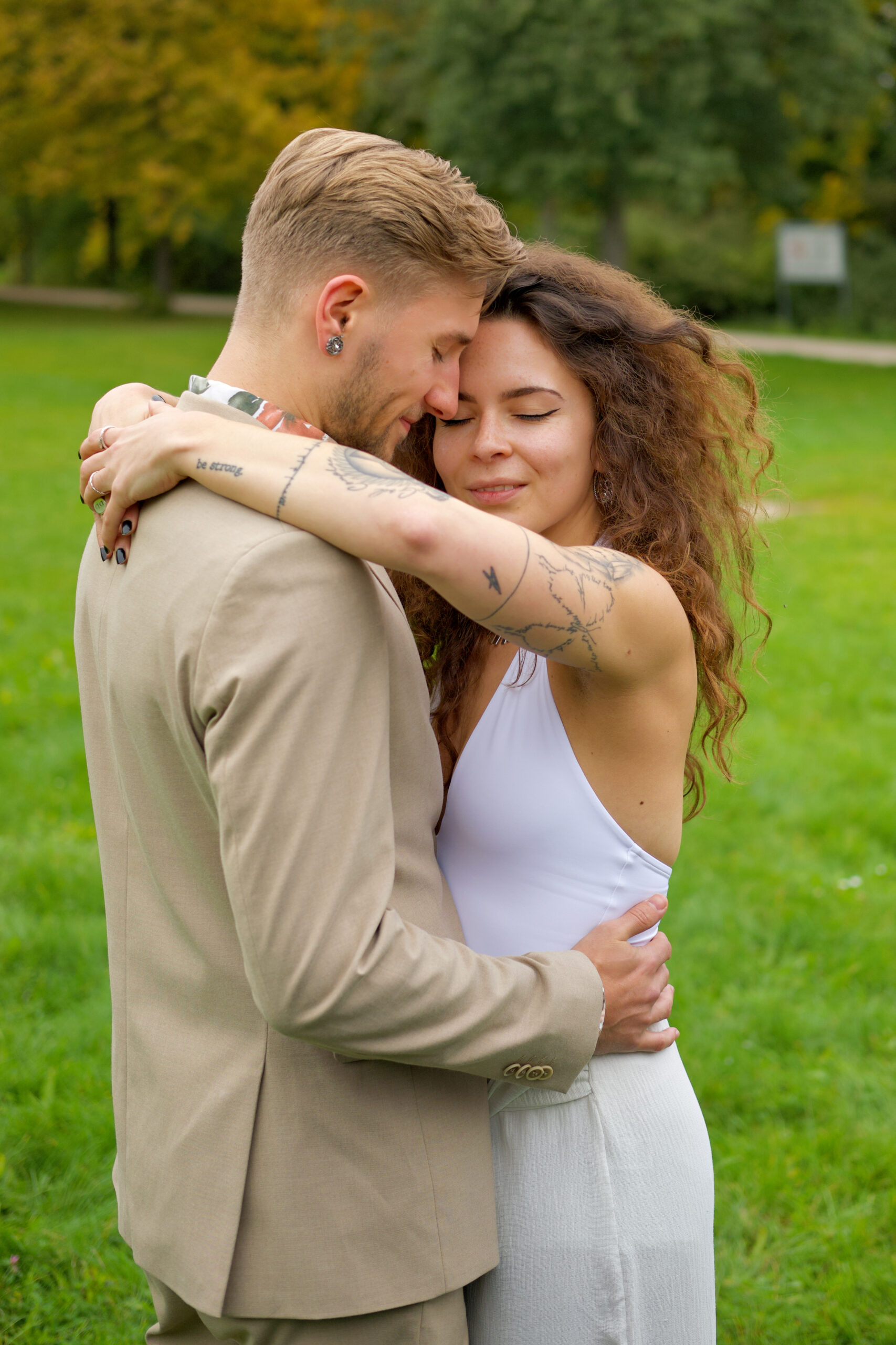 - Gefühlvolles Brautpaar beim Brautpaarshooting im Stadtpark in Soest