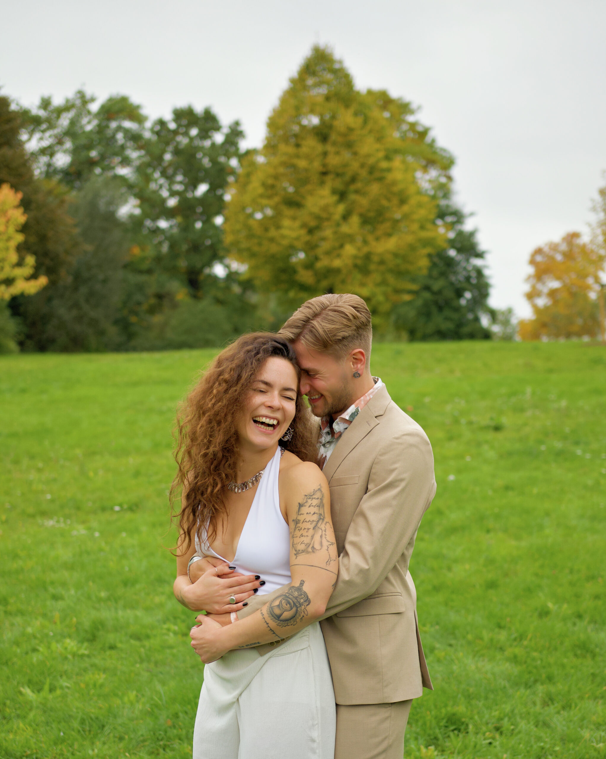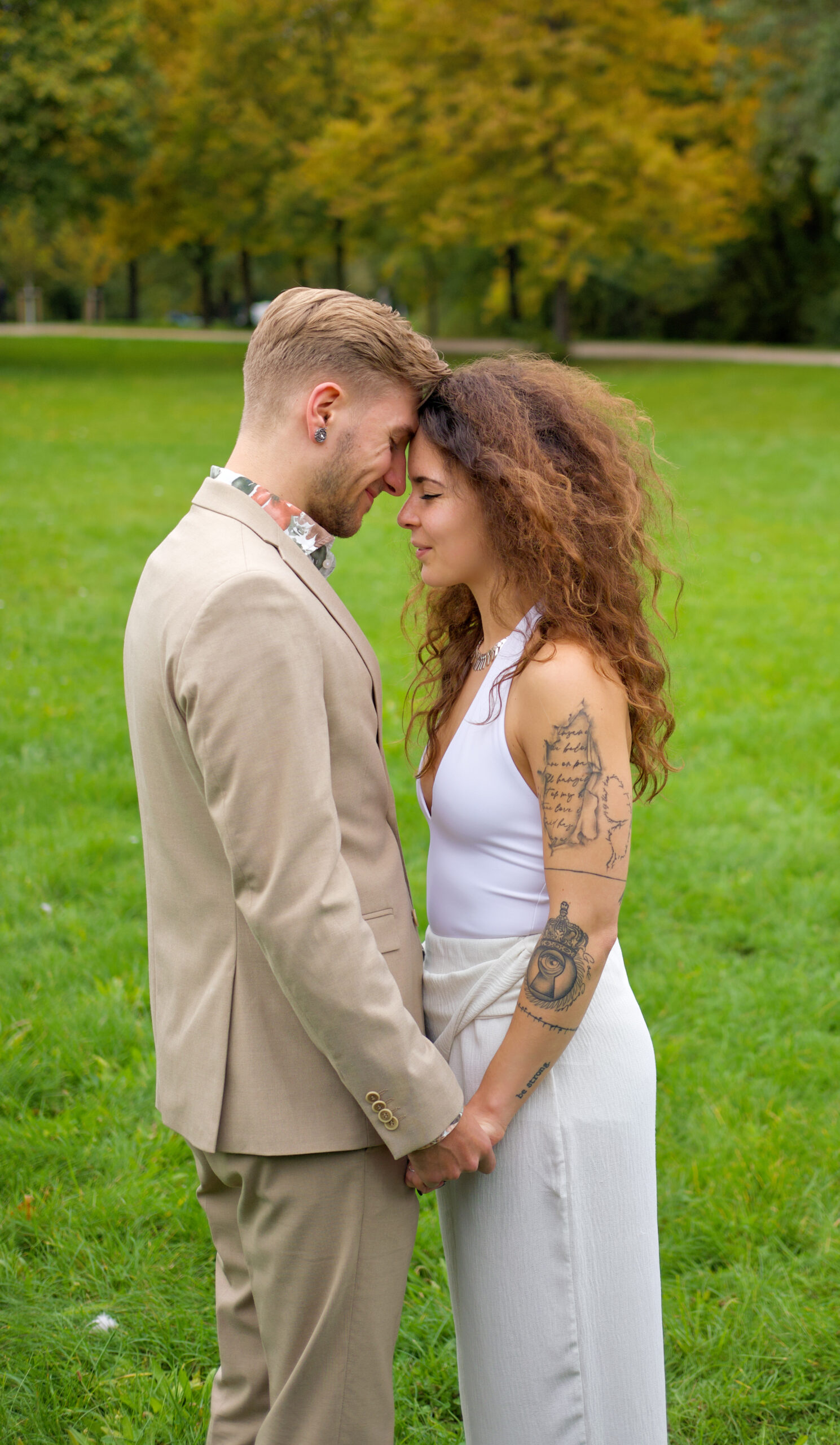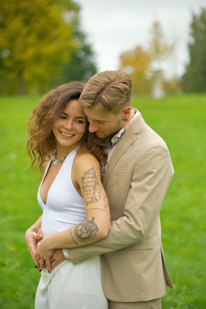 - Verliebtes Brautpaar beim Brautpaarshooting im Stadtpark in Soest